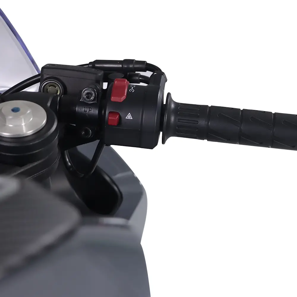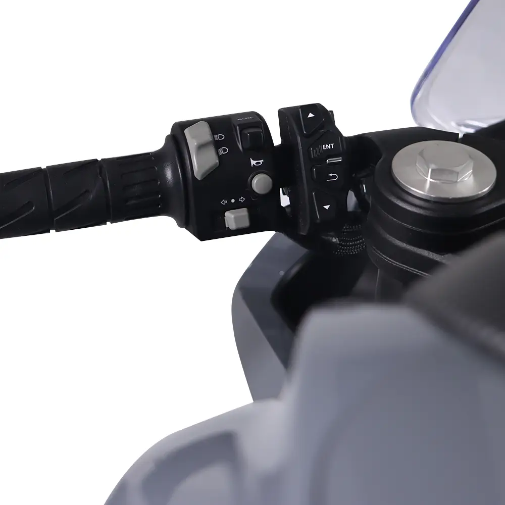 طراحی اسپرت و جذاب: این موتورسیکلت دارای طراحی تهاجمی و مدرن است که شامل چراغ‌های LED، فلاپ‌های آیرودینامیک و یک صفحه نمایش دیجیتال می‌شود.