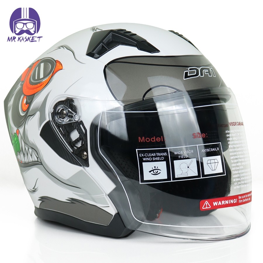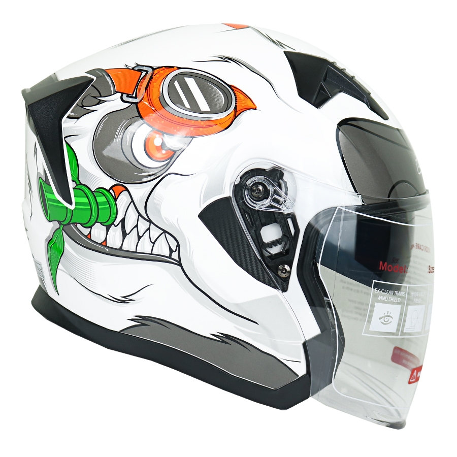 کلاه کاسکت بدون فک دی ای وان کد ۴۰۷ طرح بوفالو رنگ نارنجی