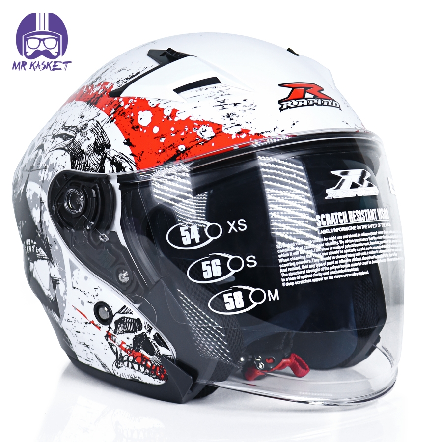 توضیحاتی کوتاه درباره کلاه کاسکت بدون فک راپیدو مدل ۸۷۸ طرح BON رنگ سفید براق: