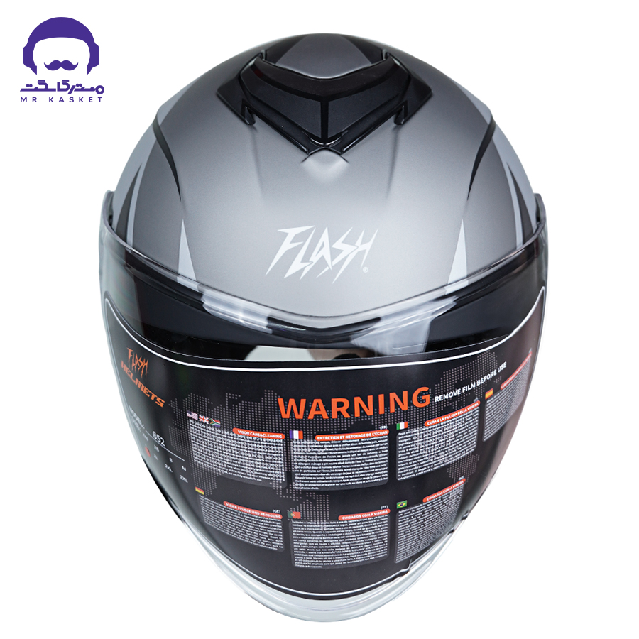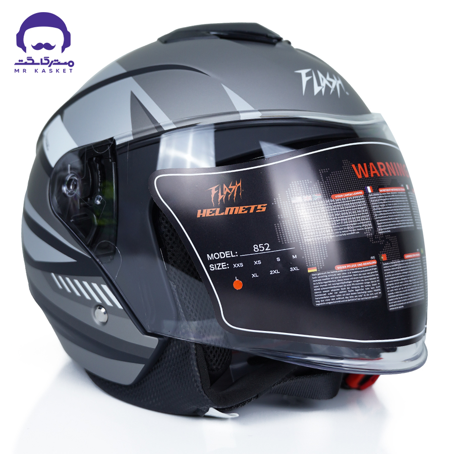 کلاه کاسکت بدون فک فلش مدل ۸۵۲ طرح طوسی مات
