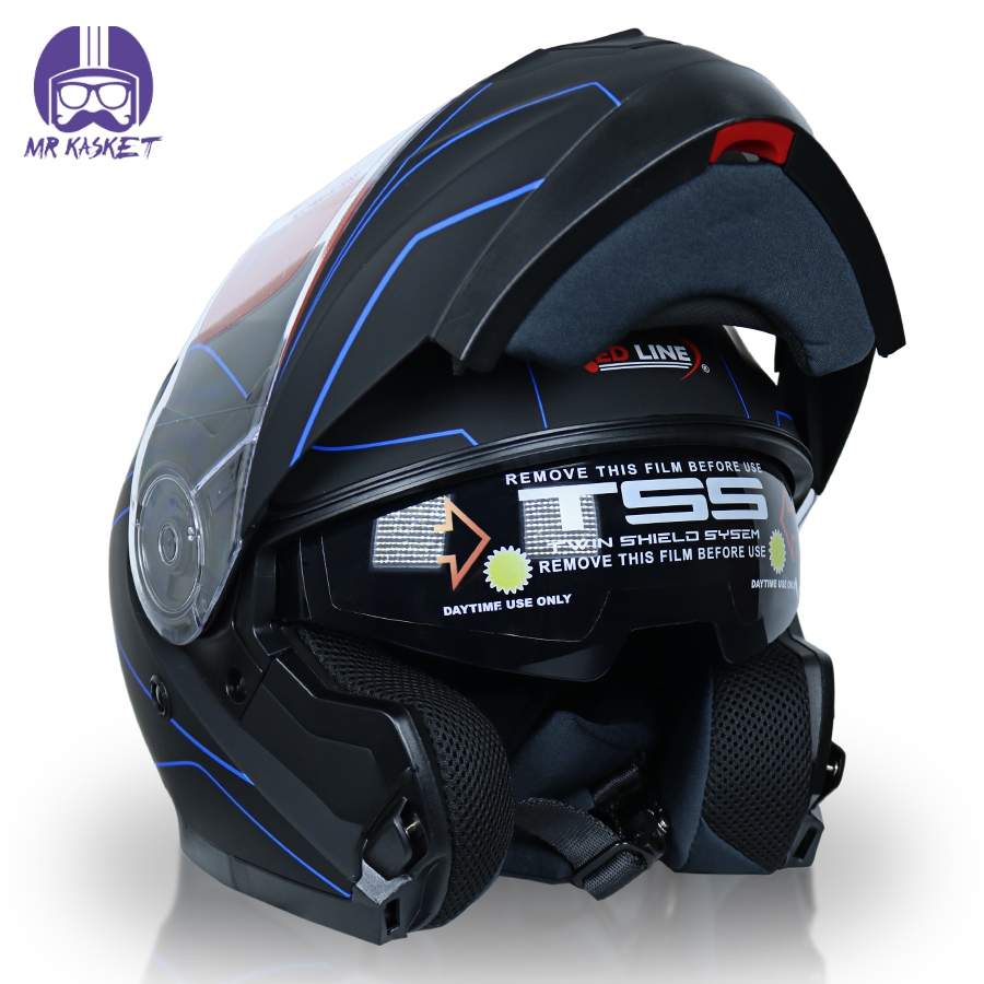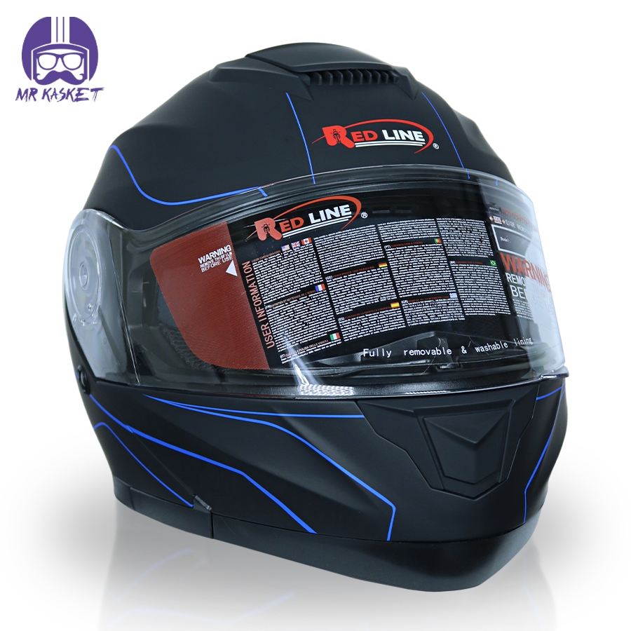 کلاه کاسکت بلوتوث دار فک متحرک ردلاین مدل ۹۳۷ رنگ مشکی آبی
