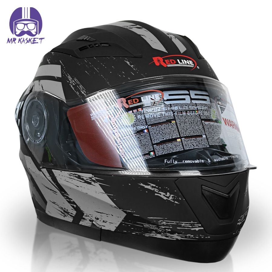 کلاه کاسکت بلوتوث دار فک متحرک ردلاین مدل ۹۳۵ رنگ مشکی طوسی