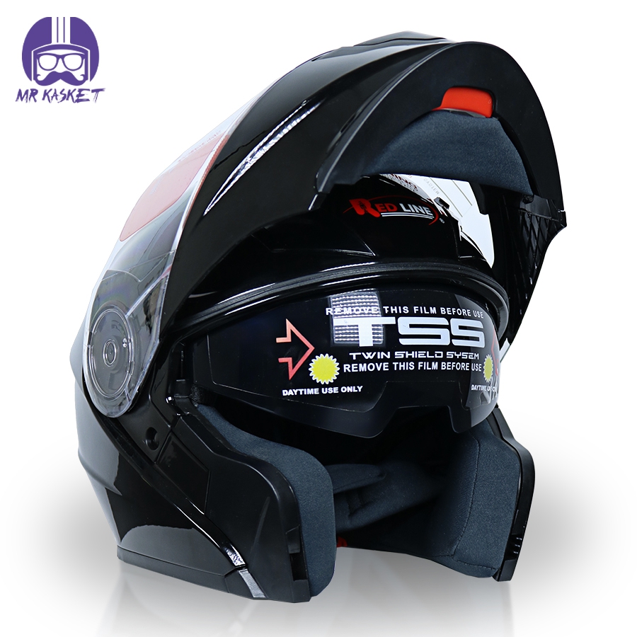 کلاه کاسکت بلوتوث دار فک متحرک ردلاین مدل ۹۳۹ رنگ مشکی براق