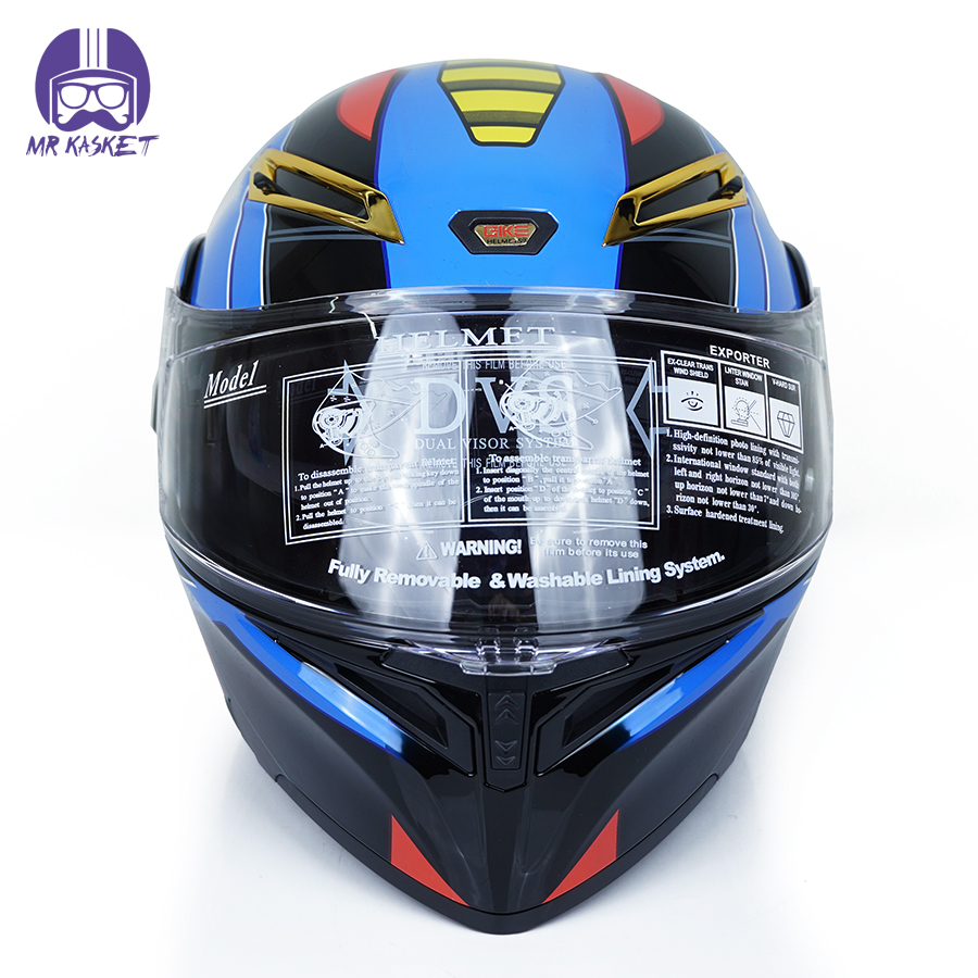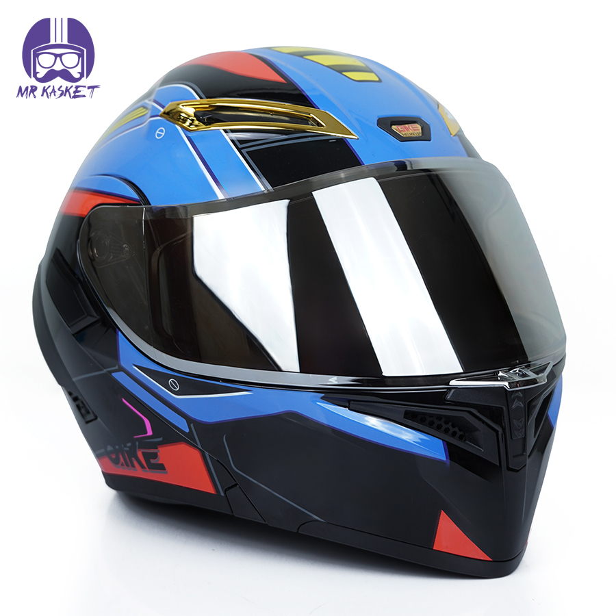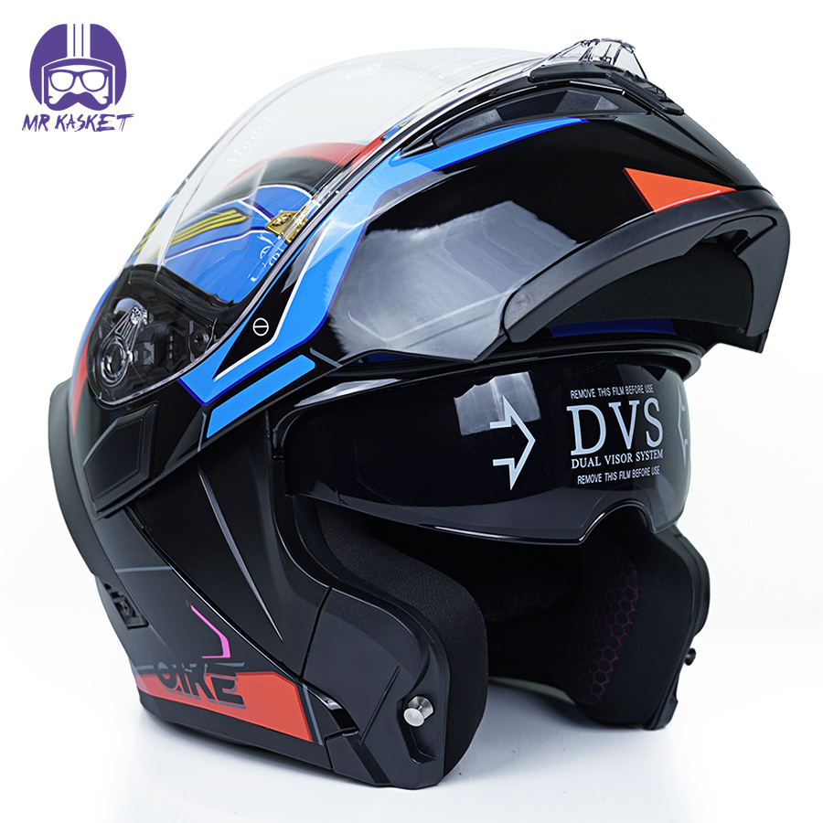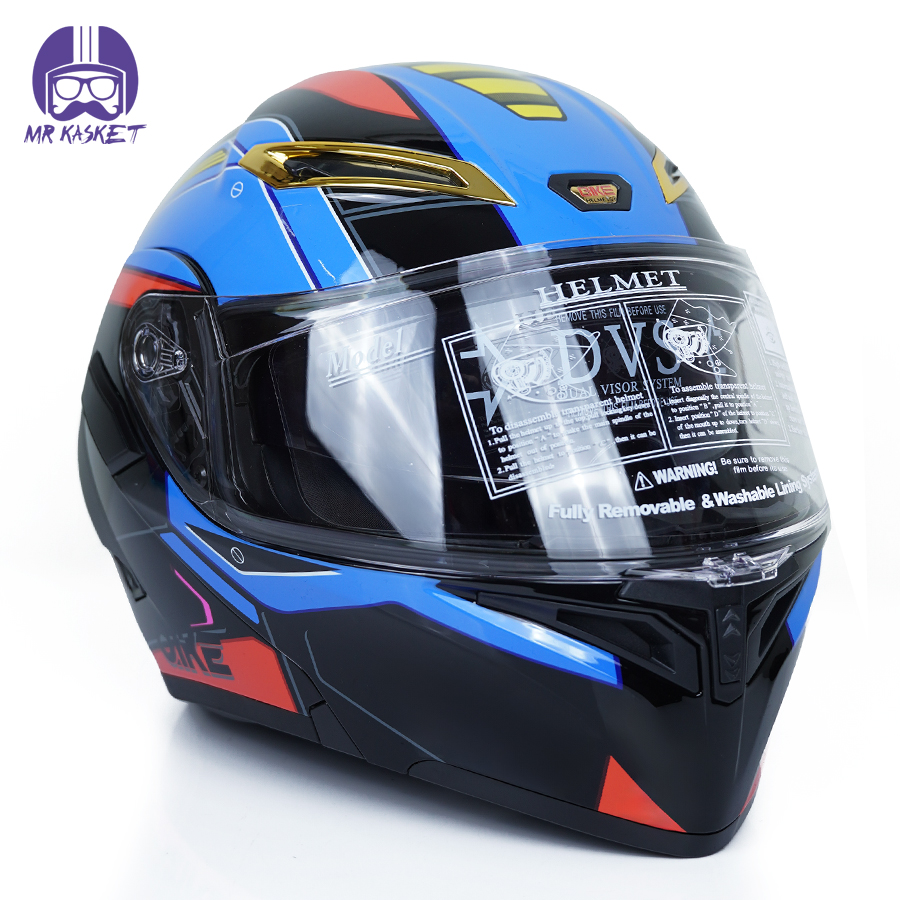 کلاه کاسکت بلوتوث دار فک متحرک کایک مدل Black Blue Mecha