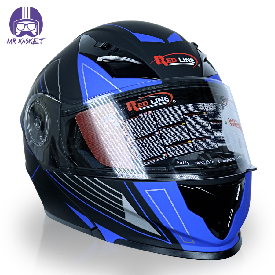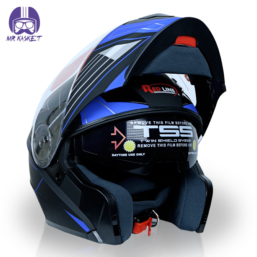 کلاه کاسکت بلوتوث دار فک محترک ردلاین مدل ۹۳۹ رنگ مشکی آبی
