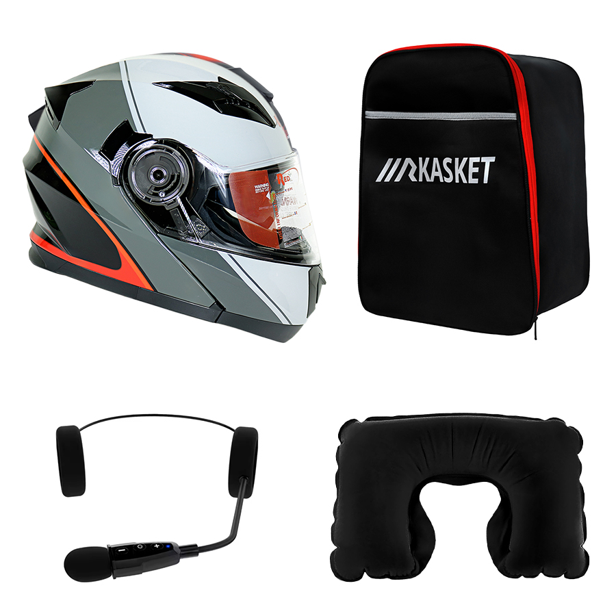 کلاه کاسکت ردلاین مدل ۹۳۵ رنگ Art Gray به همراه هندزفری بلوتوثی و کیف حمل و پد گردن مجموعه ۴ عددی