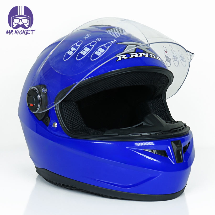 کلاه کاسکت فک ثابت راپیدو مدل ۹۶۶ شال دار رنگ آبی