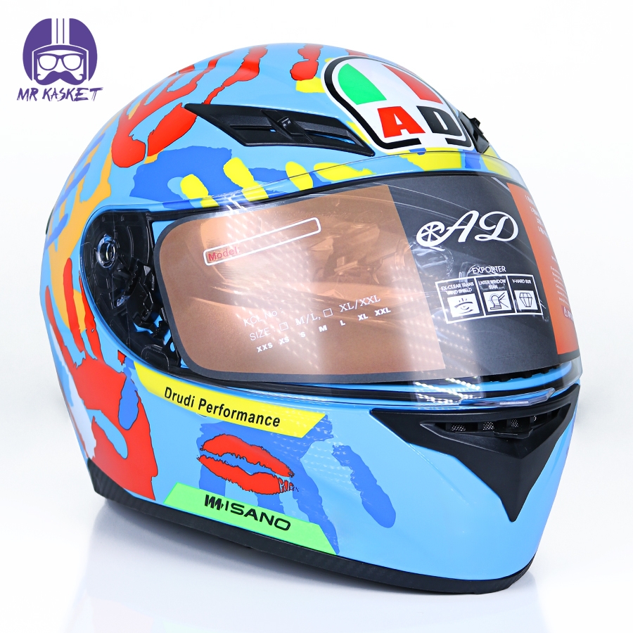 کلاه کاسکت فک ثابت AD مدل Hand رنگ آبی