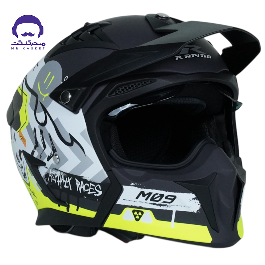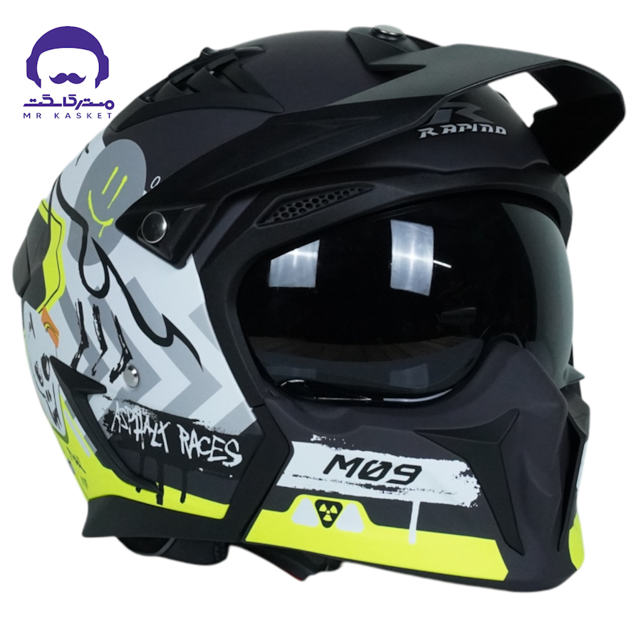 توضیحاتی کوتاه درباره کلاه کاسکت فک جدا برند راپیدو 890 مدل اسکورپین رنگ مشکی مات: