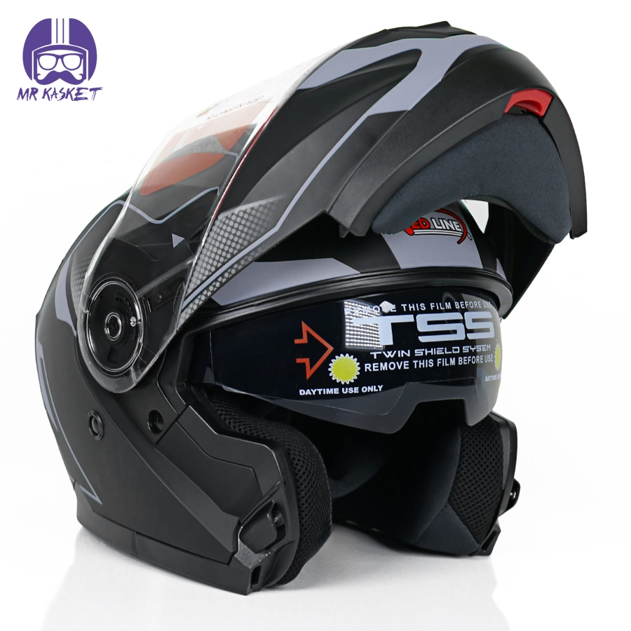 کلاه کاسکت فک متحرک ردلاین مدل ۹۳۷ رنگ مشکی طوسی مات