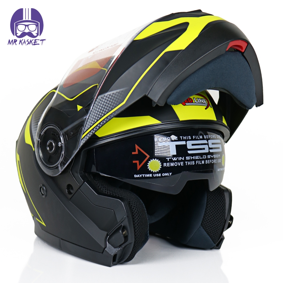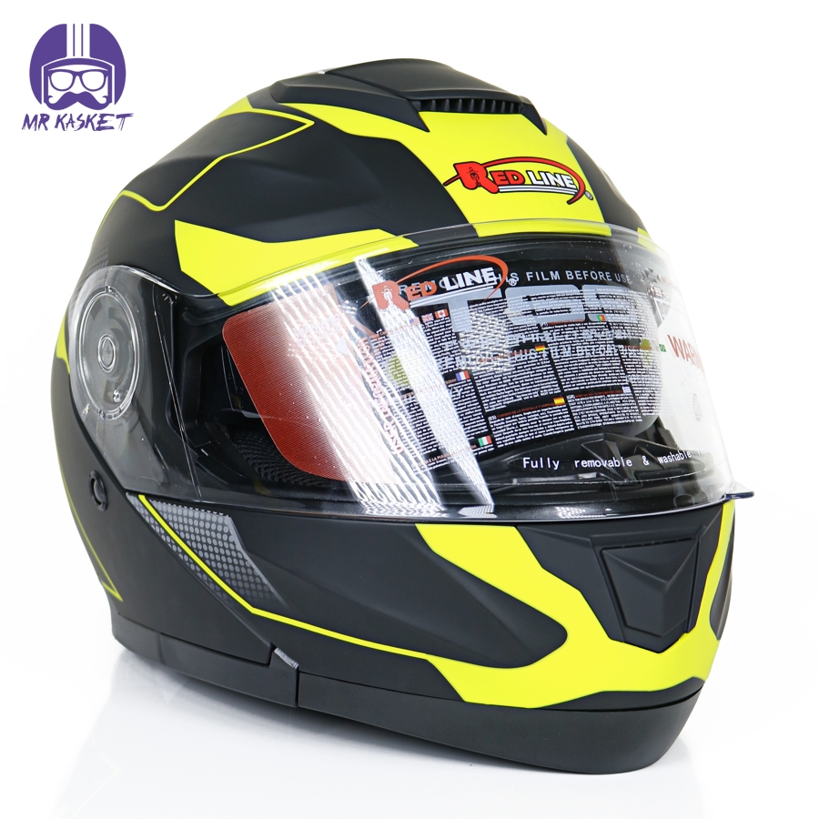 کلاه کاسکت فک متحرک ردلاین مدل ۹۳۷ رنگ مشکی زرد مات