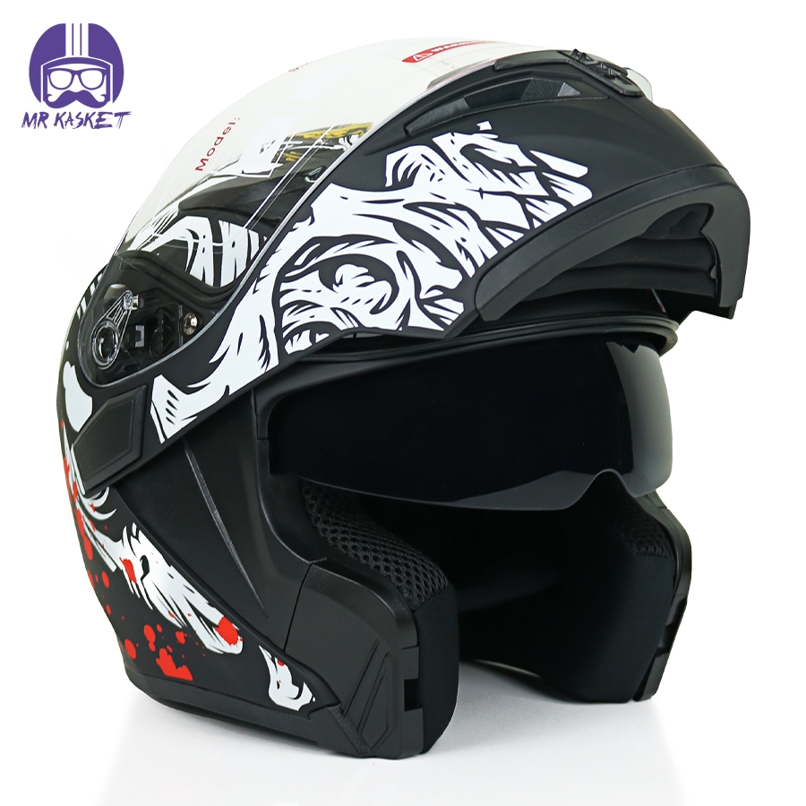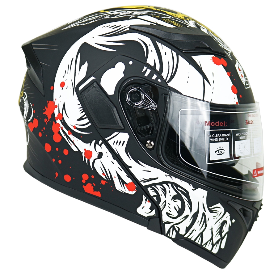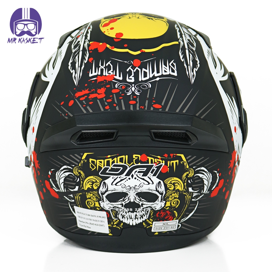 کلاه کاسکت فک متحرک Da1 مدل ۱۰۱ طرح اسکلت زرد