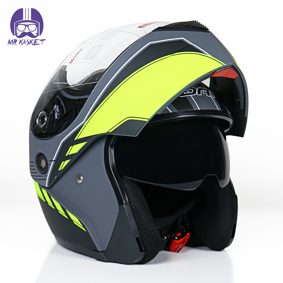 کلاه کاسکت فک متحرک DA1 مدل ۱۰۲ رنگ زرد مشکی